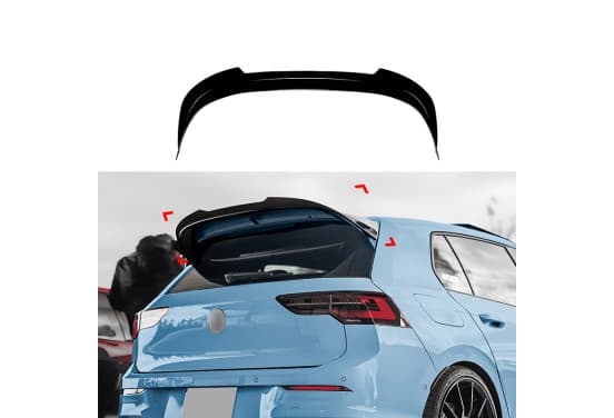 Becquet de toit (capuchon de spoiler) adapté à la Volkswagen Golf VIII HB 3/5 portes Clubsport/GTi R 2020- (ABS noir brillant) Convient également aux modèles équipés d'un becquet de toit Clubsport. - Auto-adhésif, fourni avec ruban de montage | |