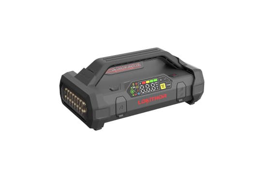 Le Lokithor JA301 PRO est un booster de démarrage avec compresseur d'air. Cet appareil multifonction 4 en 1 fait office de booster de démarrage, de gonfleur de pneus, de batterie externe et de lampe torche LED. Puissant, le Lokithor JA301PRO délivre un courant de démarrage suralimenté impressionnant de 2 500 ampères, permettant jusqu'à 40 démarrages. Compatible avec de nombreux véhicules, notamment les voitures, les motos, les bateaux, les camping-cars, les quads, les SUV, les fourgonnettes et les tracteurs, il démarre les véhicules 12 V (jusqu'à 8,5 litres d'essence et 6,5 litres de diesel) en 60 secondes. La technologie Connect Max optimise l'efficacité du démarrage rapide en détectant l'impédance de la connexion de la pince, garantissant ainsi des performances fiables à chaque fois. Le compresseur d'air gonfle un pneu 195/65/R15 de 0 à 2,4 bar en seulement 5 minutes. Sa pression maximale est de 10 bars et son débit d'air est de 35 l/min. Grâce aux adaptateurs fournis, il permet également de gonfler des matelas pneumatiques, des jouets gonflables ou des ballons de football. Le démarreur est équipé de plusieurs fonctions de sécurité, notamment : protection contre les courts-circuits, protection contre les surintensités, protection contre l'inversion de polarité, protection contre la surchauffe, protection contre la surchauffe et technologie sans étincelles. La lampe de poche LED intégrée a une puissance lumineuse de 300 lumens et trois modes dynamiques : lampe de poche, lumière stroboscopique rouge et lumière SOS rouge. Le démarreur d'appoint dispose d'un panneau de commande facile à utiliser et d'un grand écran facile à lire. Caractéristiques: