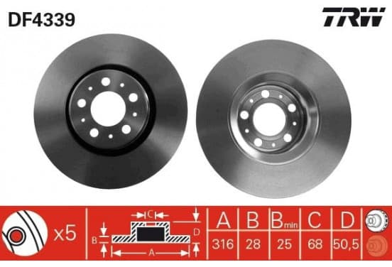 Disque de frein DF4339 TRW