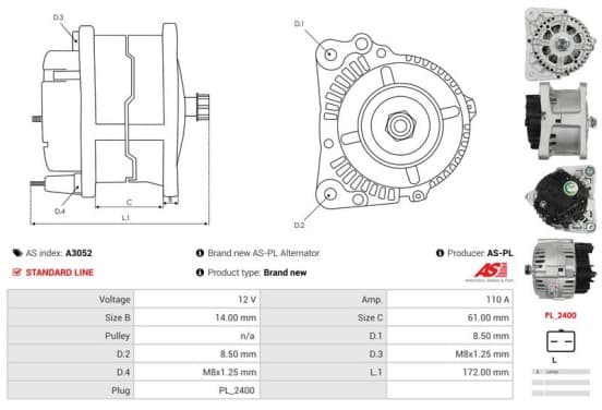 Numéro de produit d'origine: 1639198 | Ean: 5901259404036 | Numéro de fabrication: A3052