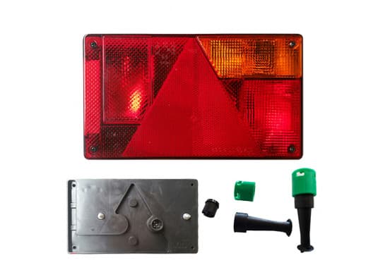 Feu arrière Aspock multipoint 235 x 135 mm triangle rectangle / feux de brouillard / feux de plaque d'immatriculation - marque E3 | |