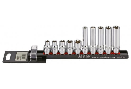 Jeu de douilles 3/8 ", TX-E 10 pièces sur rail