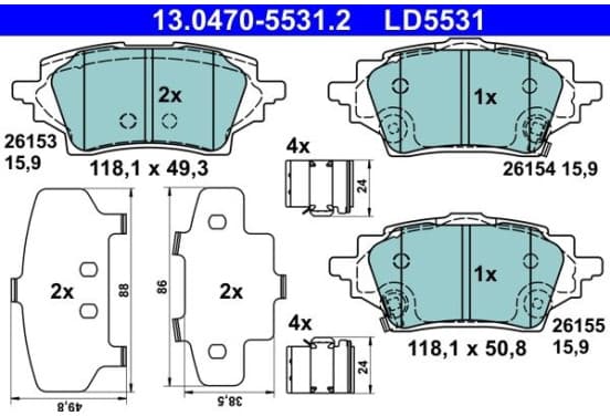Jeu de plaquettes de frein, frein à disque 13.0470-5531.2 ATE