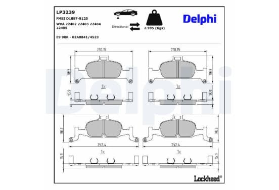 Kit de plaquettes de frein, frein à disque LP3239 Delphi