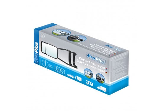 Miroir caravane Duo Miroir de caravane universel facile et rapide à monter et à démonter. Vous pouvez facilement le monter au moyen de sangles réglables élastiquement. Le miroir laisse la vue sur le miroir existant libre et peut être utilisé aussi bien à gauche qu'à droite. De plus, cette version Duo dispose d'un miroir d'angle mort supplémentaire qui peut être réglé séparément.