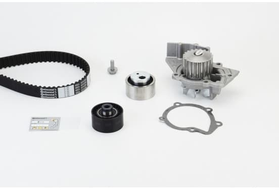 Kit courroie de distribution avec pompe à eau L'ensemble contient: Courroie de distribution, pompe a eau, tendeur, galet de guidage et vis --- | |