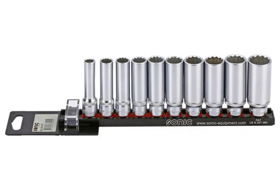 Jeu de douilles 3/8 ", 12 côtés longs, 10 côtés sur rail