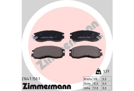 Kit de plaquettes de frein, frein à disque 21647.150.1 Zimmermann